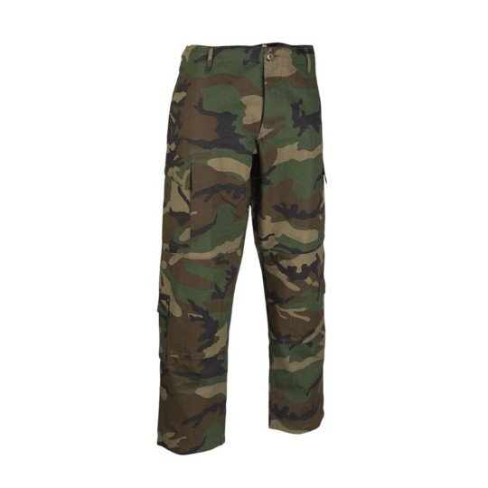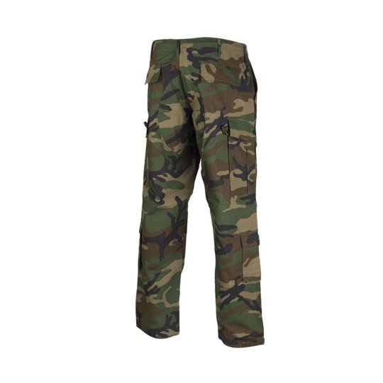 Mil-tec ACU R/S Woodland kelnės pasiūtos iš patvaraus „Rip-Stop“ audinio (100 % medvilnė). Patogios dėvėti žvejybos ar medžioklės metu.