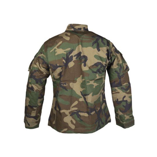 Švarkas Mil-tec ACU R/S Woodland pasiūtas iš patvaraus „Rip-Stop“ audinio (100 % medvilnė ) su stipriu priekiniu užtrauktuku ir papildomu Velcro užsegimu lipukais. Švarko viršutinės kišenės pakreiptos, todėl lengviau pasiekti jose esančius daiktus dėvint taktinę liemenę. Dvi pečių kišenės su Velcro ženkliukams. Velcro rankovės tvirtinimas ties plaštaka.