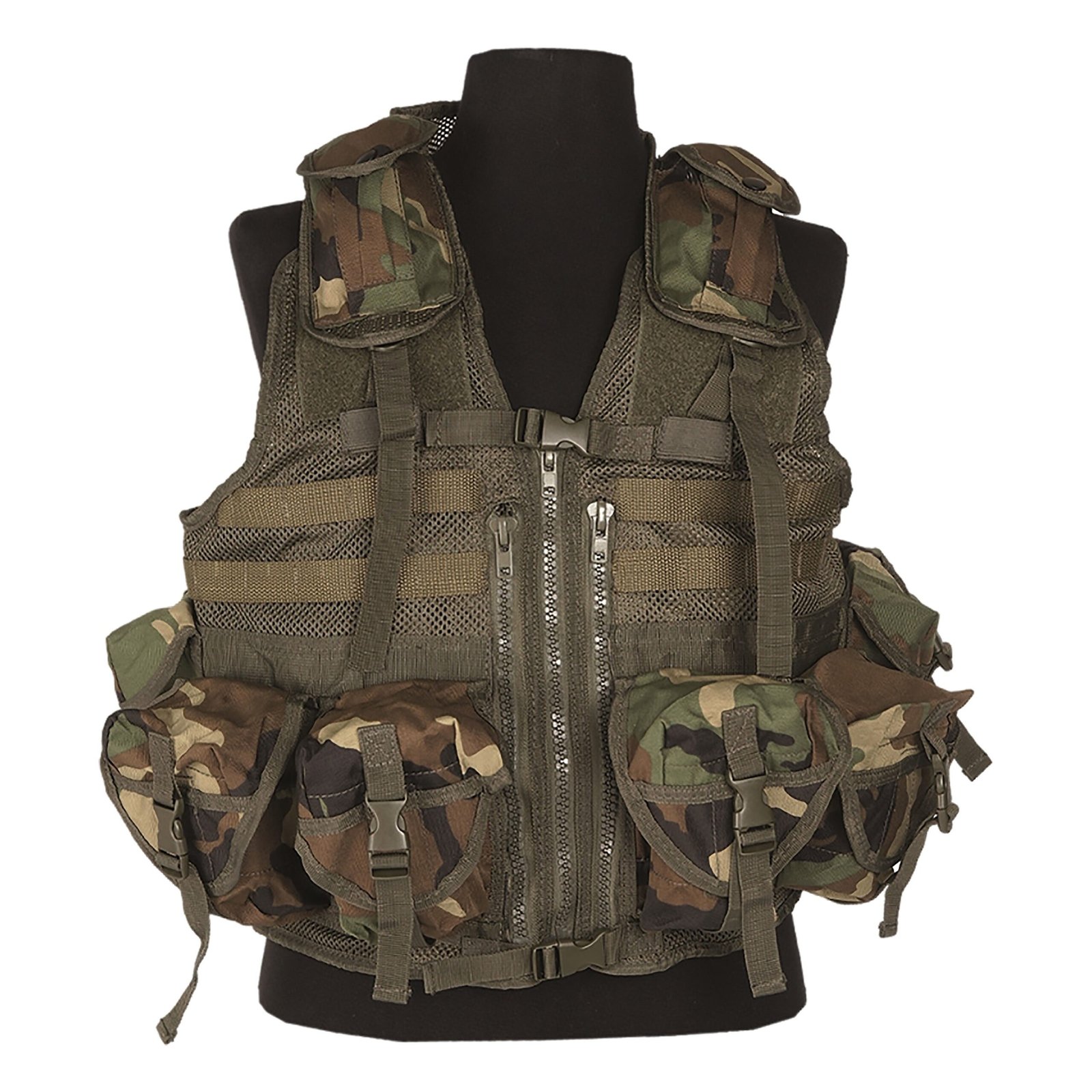 Taktinės liemenės su 8 nuimamomis kišenėmis; modulinė kilpų sistema leidžia pritvirtinti papildomus įrengimus; stiprus priekinis užtrauktukas- individualus dydžio reguliavimas pritvirtinant virveles šone ir užkabinus kablį bei kilpą pečių srityje;gelbėjimo judesys ant nugaros