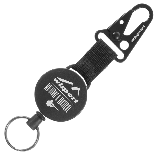 Praktiškas ir unikalus raktų pakabukas su įtraukikliu, pagamintas iš patvaraus dirželio ir karabino. Idealiai tinka EDC aksesuarams, tokiems kaip raktai, žibintuvėliai, daugiafunkciai įrankiai ar kiti daiktai, pritvirtinti prie kuprinės ar liemenės. Raktų pakabuką galima greitai ir lengvai pritvirtinti prie diržo kilpos, užtrauktuko, kuprinės dirželio, krepšio dirželio ar kitose vietose. Užsegimo konstrukcija apsaugo nuo atsitiktinio pametimo. Gamintojo logotipas yra atspausdintas tiek ant įtraukiklio, tiek ant karabino. Techninės specifikacijos: Spalva: juoda, Karabino medžiaga: plastikas, plienas, Troso medžiaga: plienas, Troso ilgis: 63 cm, Įtraukiklio skersmuo: 40 mm, Įtraukiklio storis: 10 mm, Svoris: 40 g, Gamintojas: Wisport, Lenkija