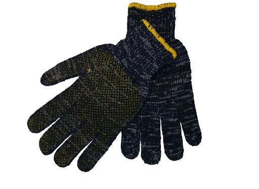 Žieminės trikotažinės pirštinės megztos su PVC taškais iš vienos pusės.